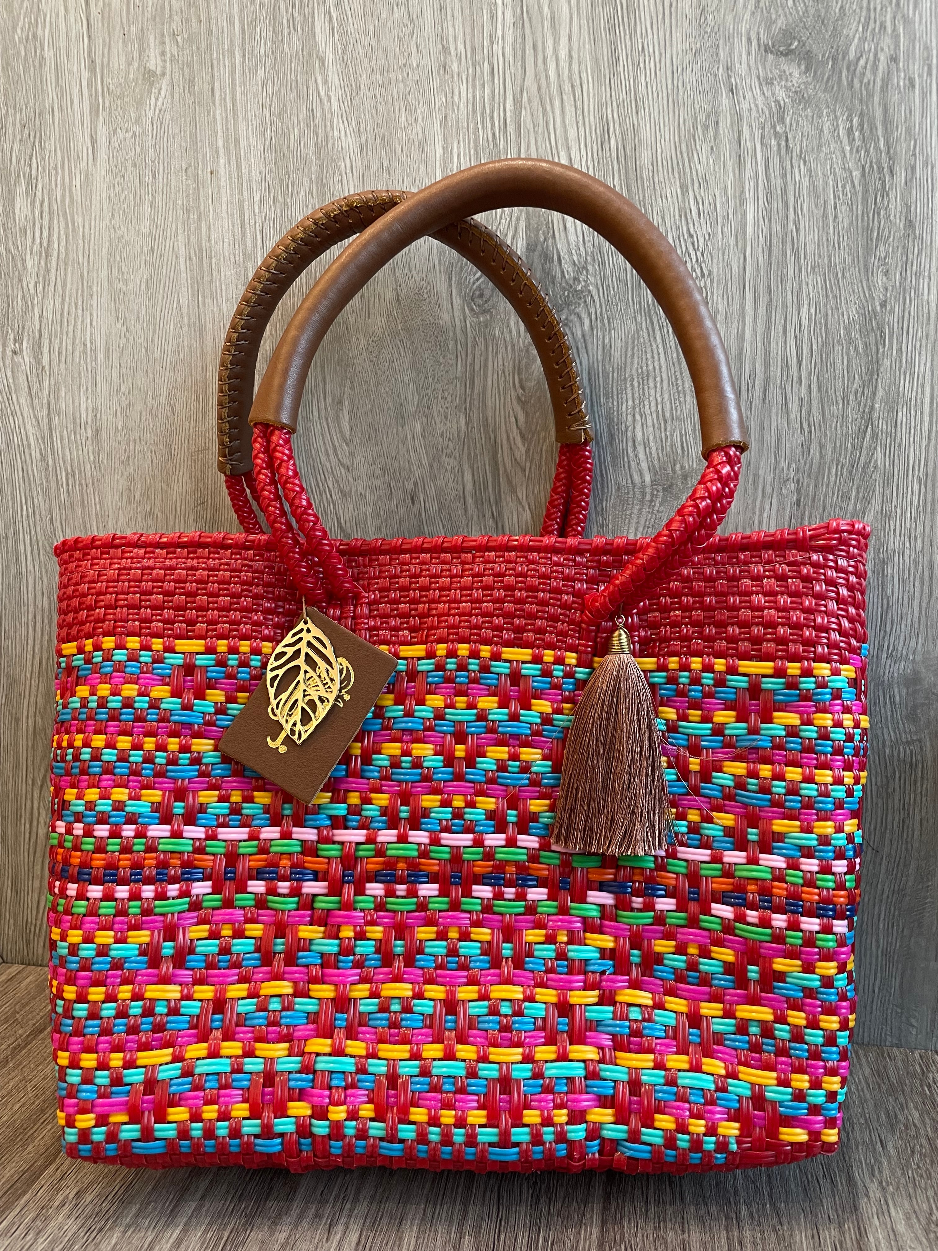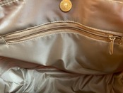 縦約23cm、横約28cm、奥行き約9cm、持ち手内側長さ約15cm。撮影に使用したため、割引価格にてご提供。