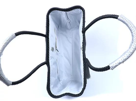 カナスタはスペイン語で「かご」という意味です。脇のホックを外すと幅が広がりお買い物かごのように使える便利な優れものです。ネグロはスペイン語で「黒」の意味です。装飾物や持ち手の牛革のシルバーがアクセントとなっています。