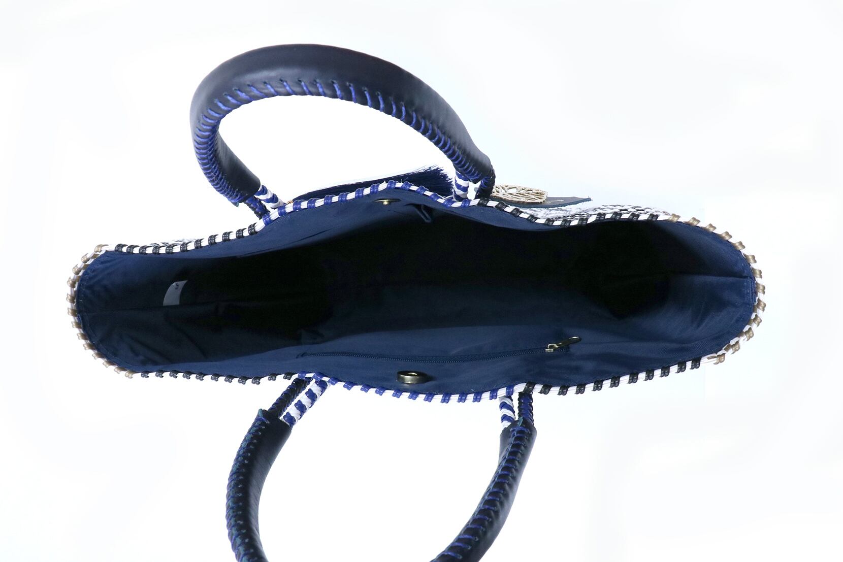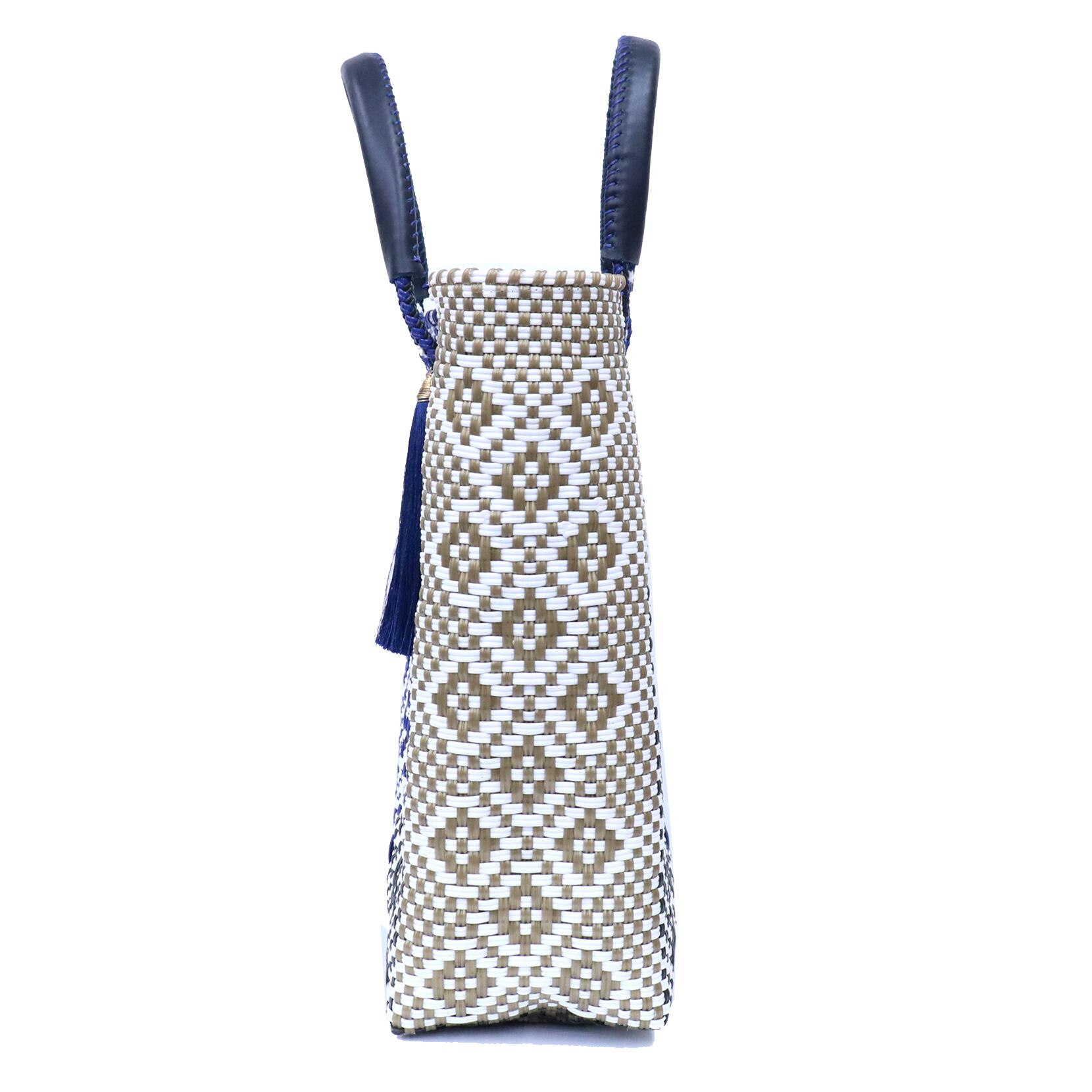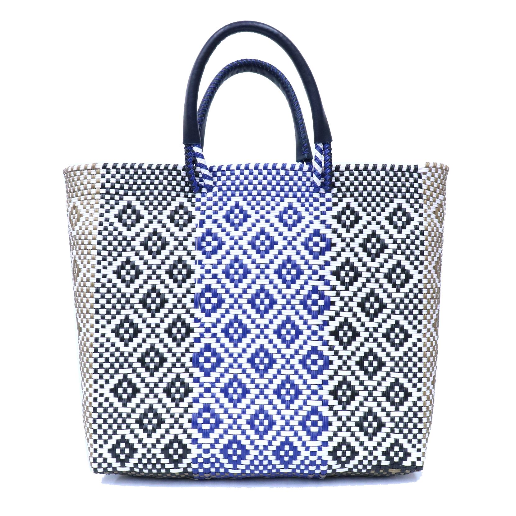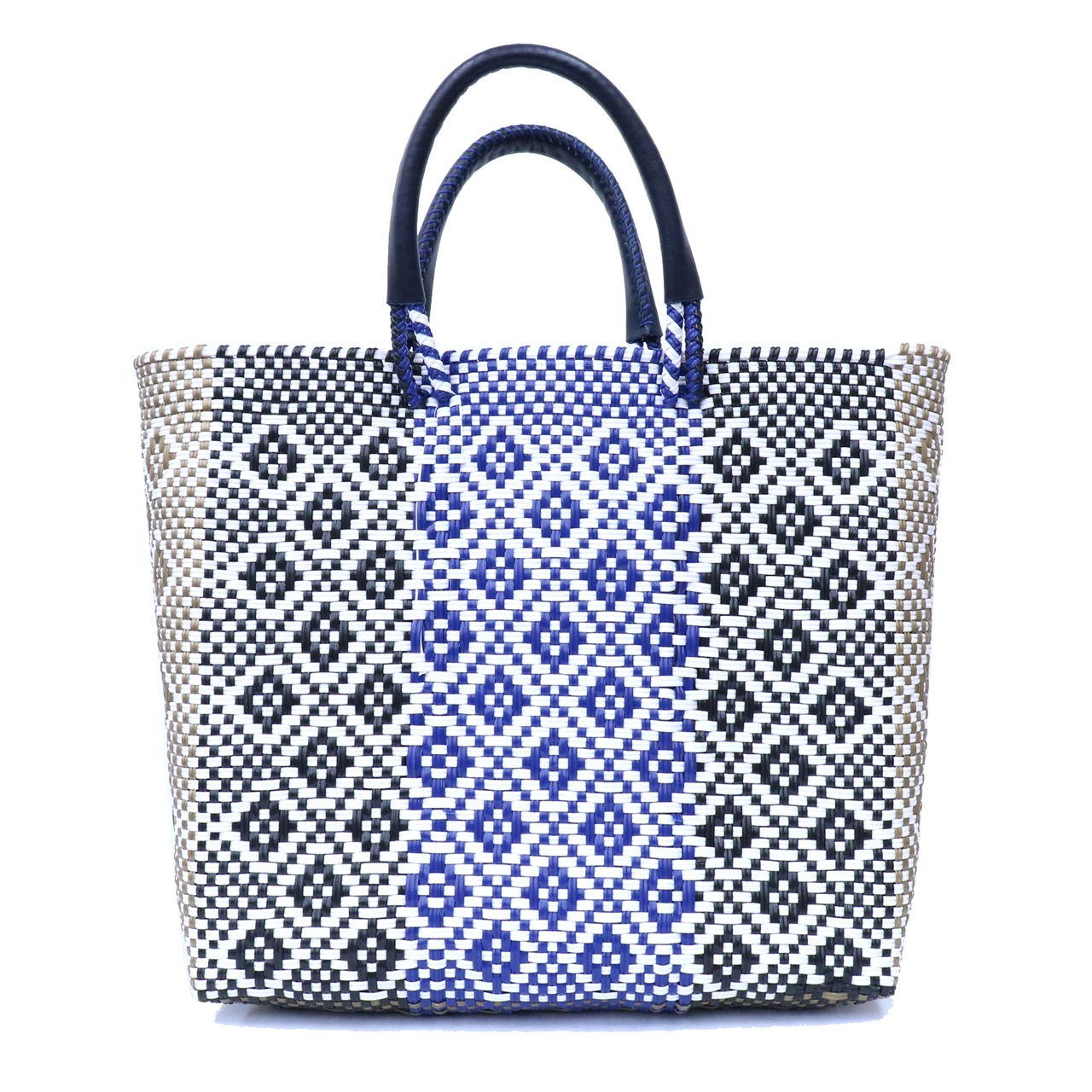 A4サイズの書類やパソコンもすっぽり入る大きさでお仕事や習い事、お買いものなど様々なシーンで大活躍してくれます。フロール(Flor)はスペイン語で「花」、ロンボ(Rombo)は「ひし型」です。伝統的な柄をモダンな色彩の組み合わせで編み込みました。