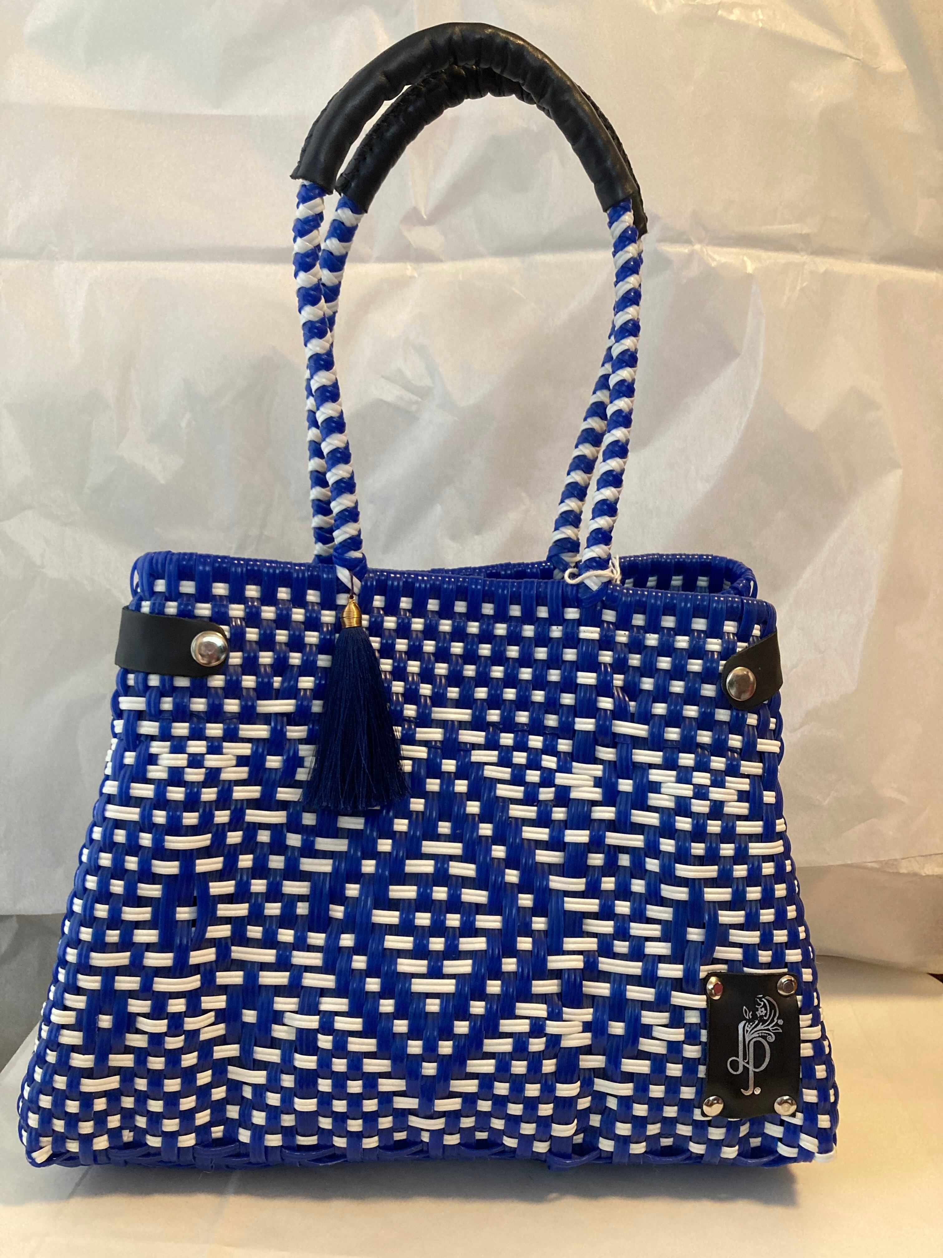 プエブラ州のタラベラ焼きのような青と白のカナスタ・メディアーナです。