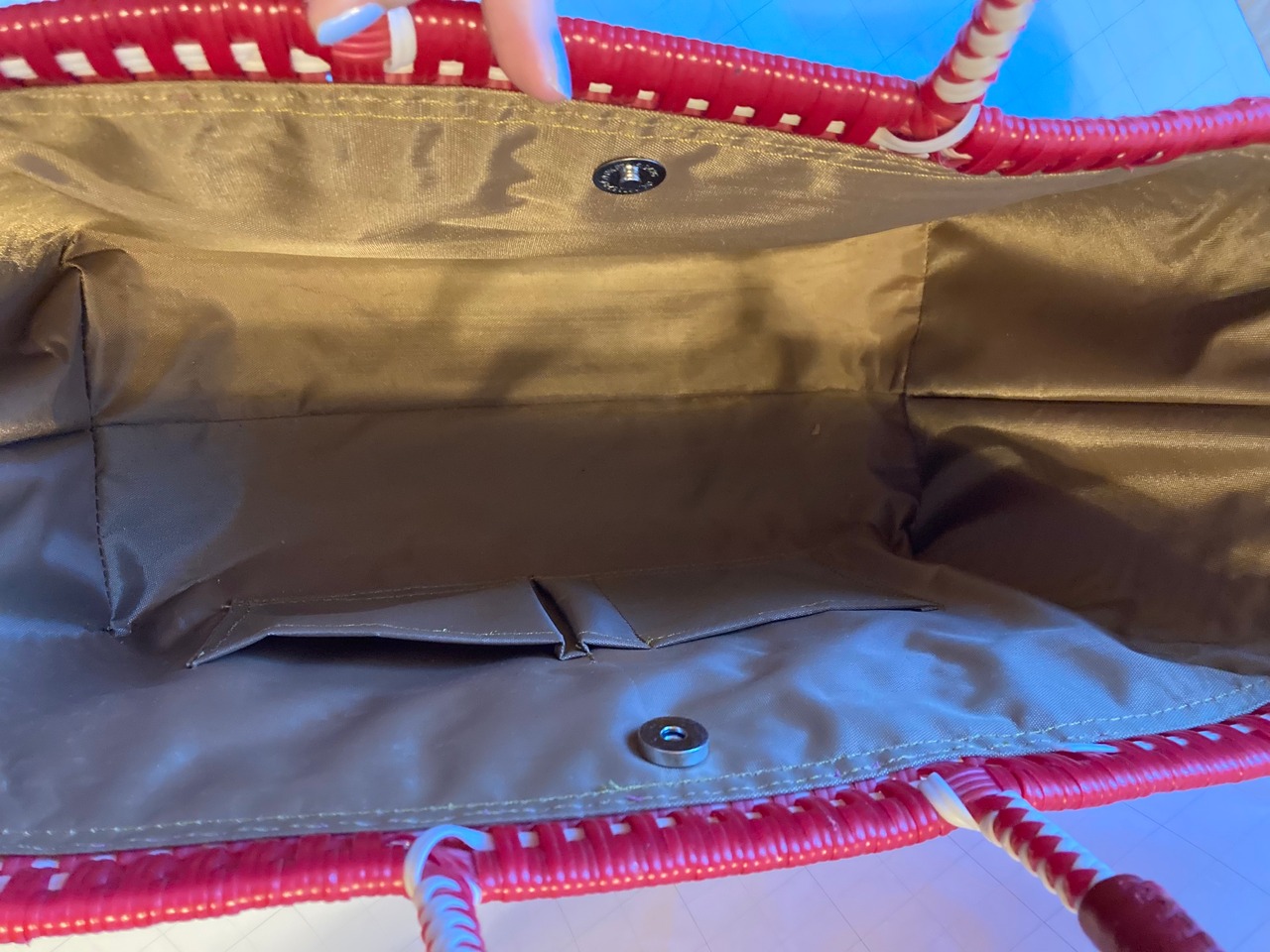カナスタはスペイン語で「かご」という意味です。脇のホックを外すと幅が広がりお買い物かごのように使えます。